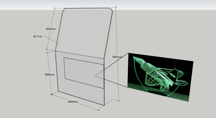 용도는 스펙보드용 아크릴로 전시장에 사용하려고 합니다. 5T 투명 아크릴에 이미지와 비슷한 전투기 모양의 데이터를